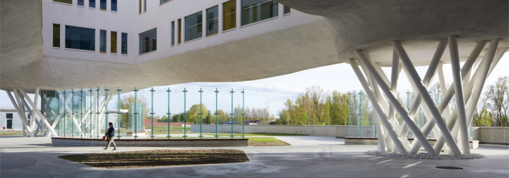 The grounds where the hospital is built, extend to 20 hectares. The new health care facility contains a hospital, a rehabilitation centre, a care hotel, an outpatients clinic, lecture halls, public events spaces and a helipad. The challenges and ambitions of the new hospital range from being highly functional and future-oriented to sustainable and in any case, conserve the rural character of the environment.
