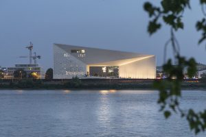 “The urban room is at once a frame for the artwork, a stage for the performances, a screening room for the media collections and most perhaps most importantly, an open room for the urban life of Bordeaux to invade and engage with the arts. Giant windows overlooking the urban room offers views to the dance studio of OARA and on the opposite end, an inclined mirror reflects the lobby below. The visitors are almost participating in an installation, just by being there. In addition, large bleachers on either side of the building invites people to hang out and enjoy amazing views of the River Garonne and the city.” Jakob Sand, Partner, BIG.